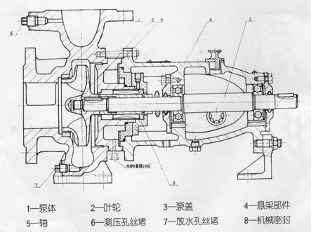 該系列泵為后開門結構,其優點是轉子部件檢修或更換無須拆卸管道,轉子部件由懸架支撐哲(請參考ISR泵結構圖)。
