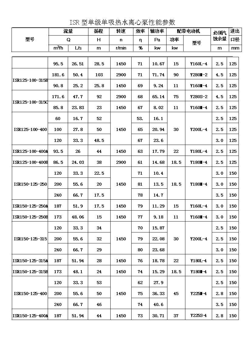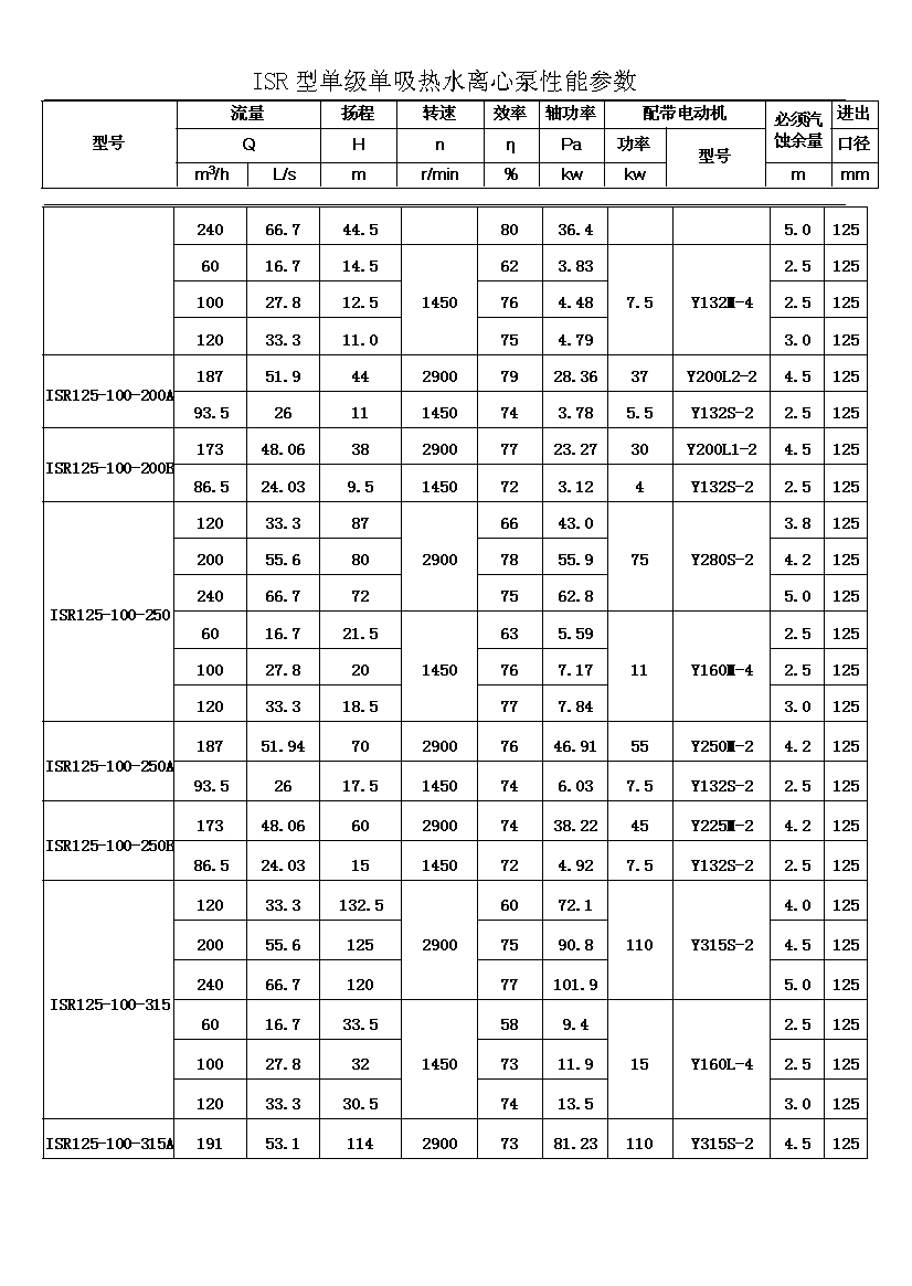 流量Q:6.3~400m3/h;揚程H:5~125。